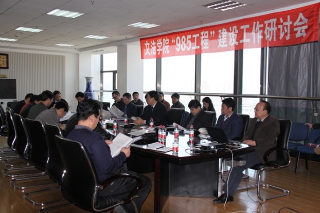 2011年4月13日14时30分,文法学院“985工程”建设工作研讨会在艺术学院会议室(综合楼912室)举行,参加本次会议的有校学科建设与发展处副处长王庚华、文法学院院长张雷、院党委书记杨建春、“985工程”科技与社会(STS)哲学社会科学创新基地”项目负责人陈凡、外国语学院院长金启军、艺术学院院长巩亚东、体育部直属党支部书记杨定鹏,以及“985工程”基地建设工作小组、“985工程”基地建设专家小组成员及各主干学科、支撑学科和相关辅助学科党政负责人及办公秘书等。会议由文法学院院长张雷教授主持。