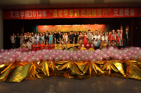 在学院领导的大力支持下,在同学们的辛勤努力和细心筹备下,文法学院2012年“盛世华章韵 起舞踏歌行”元旦晚会在一片呐喊声中圆满落幕。