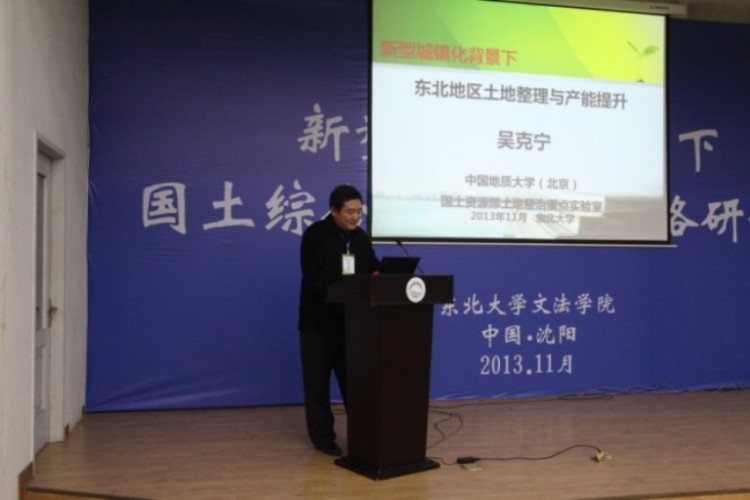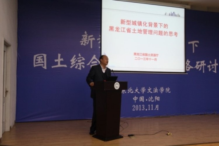 2013年11月16日至17日,新型城镇化背景下国土综合开发整治战略国际学术会议在东北大学胜利召开。会议开幕式由文法学院院长张雷教授主持,东北大学副校长左良教授、教育部公共管理类教学指导委员会主任委员娄成武教授、国家土地督察沈阳局潘宏勇副专员、辽宁省国土资源厅江晓波副厅长等领导到会并讲话。本次学术会议共进行5场11个专题报告,有来自国内外17所知名高校及中国科学院、国家及省级国土资源行业管理部门和遥感空间信息企业等单位的专家、学者和同学百余人,参加了本次学术会议。