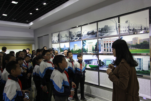 上午九时许,来自抚顺新宾县大四平中心小学的68名小学生在学校老师陪同下乘车抵达东北大学南门,早已等候在这里的东北大学文法学院志愿者以及各界爱心人士与孩子们进行了定向结对。孩子们在志愿者的带领下游览了逸夫楼、冶金馆、刘长春体育馆等具有代表性的东北大学建筑,并参观了位于汉卿会堂的校史馆,了解了东北大学悠久的发展历史及东大师生艰苦奋斗精神。