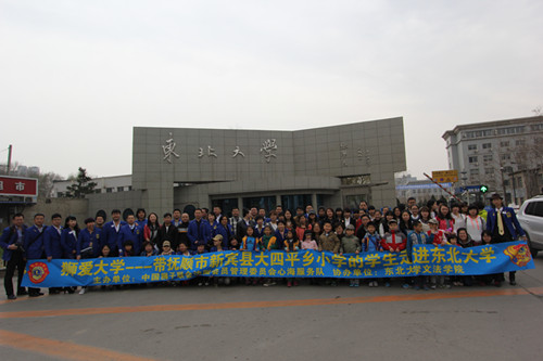 温暖进校园,慈善暖寒门。4月19日,由东北大学文法学院和中国狮子联会沈阳分会共同组织的狮爱大学——抚顺新宾县大四平中心小学师生游东大志愿服务活动在东北大学校园内顺利进行。该活动为贫困地区品学兼优的孩子们提供走进高等学府,感受大学氛围的宝贵机会,鼓励孩子们积极面对困难、自立自强、努力学习。