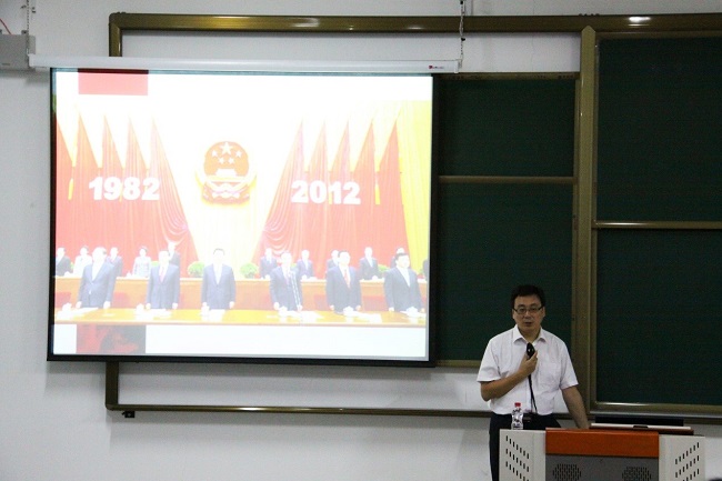 2015年6月30日晚6:00,文法学院党委书记张雷为学生党员和机关工作人员上“习近平治国理念的中国传统文化背景解读”的专题党课。