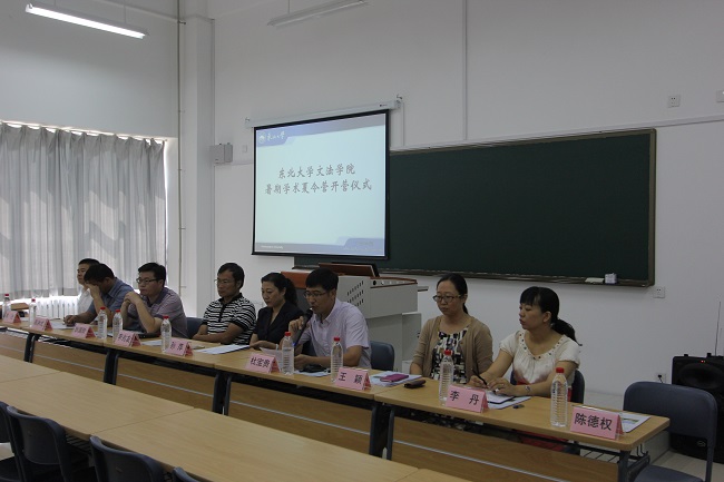 2015年7月20日上午,东北大学文法学院 2015 年行政管理学科暑期学术夏令营在浑南校区文管学馆A118教室开幕。本次夏令营,有来自全国近20所著名高校的40余名同学申请参加,经选拔,有18名同学成为正式营员。文法学院领导、行政管理系和公共事业管理系部分教师以及来自全国多所兄弟院校的优秀大学生出席开幕式。开幕式由文法学院党委副书记兼副院长夏风云主持。