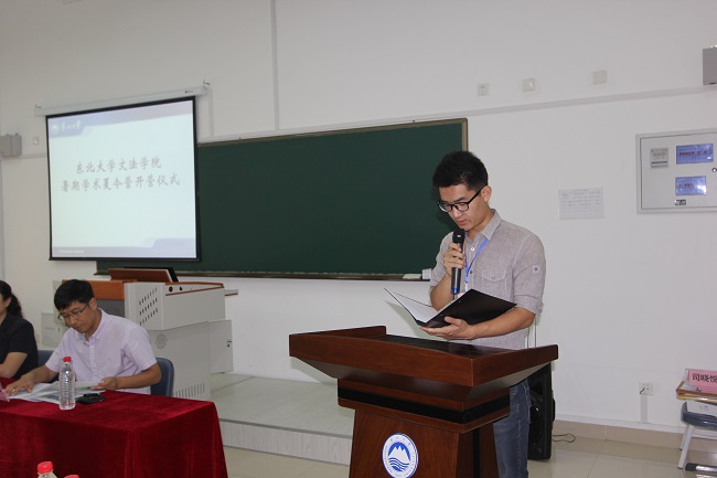 东北大学文法学院副院长孙萍教授首先致辞。她首先欢迎来自全国各地的优秀同学到东北大学参加夏令营活动,她指出硕士学位的攻读是一种学生与学校间的双向选择,而每一次选择都是一种博弈,期待在场的各位同学能够做出正确的选择。她同时对大家提出希冀,希望大家能够发挥最好的学术水平,使研究生阶段的学习成为人生学术成长的驿站。随后,营员代表胡泽新发言,向大家介绍了文法学院及行政管理学科的发展历程,并代表全体营员进行宣誓。