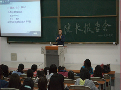 报告会最后,孙萍赠与新生两段励志的话语并对新生予以祝福,孙院长表示,这两段话语也是她努力去追寻的一种生活境界和人格品质,希望同学们能够从大学做起积极行动起来,将这些理论和理想付诸实践才能真正的实现人生价值。整场讲座内容丰富的同时又不失趣味,解答了新生心中多种疑问。文法学院的阳光文化建设倡导以人为本,院长的谆谆教诲也让新生受益匪浅,让他们在以后的学习、生活中少一些迷茫。