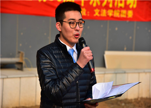 比赛开始前由夏院长为本次比赛致开幕词,在讲话中他表达了对活动的支持及对文法学院学子的深切期望,希望当代文法学子能够铭记历史、面向未来,继承发展“一·二九“时期东大学子的宝贵精神,牢记使命,书写新的篇章。夏院长精彩深刻的讲话后,裁判员代表丁俊文与运动员代表尹梦娜分别宣誓,保证遵守规则、赛出水平。