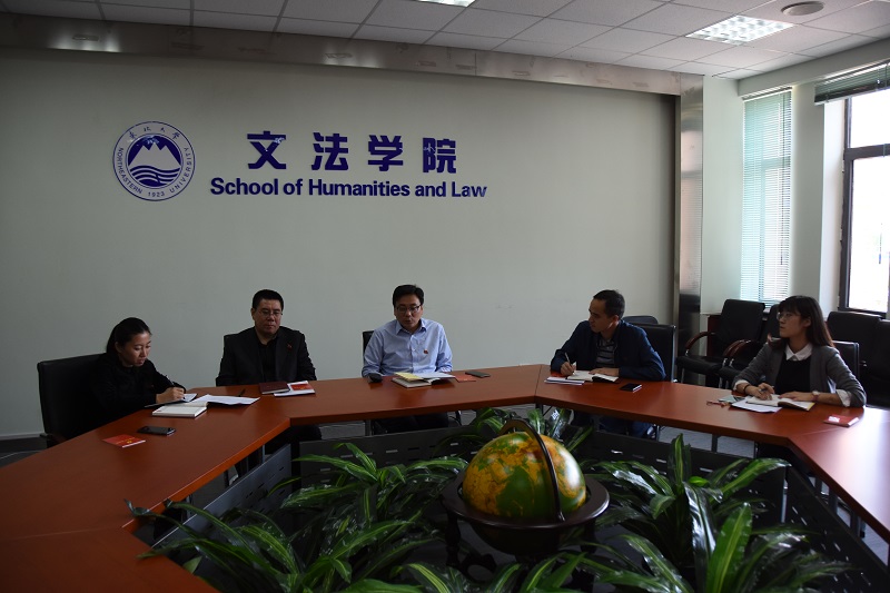 为深入贯彻落实“两学一做”学习教育,在学院范围内起到带头模范作用,5月16日下午,文法学院党委委员在学院会议室开展了学习《党章》和《党委会的工作方法》活动,活动由党委书记张雷主持。
