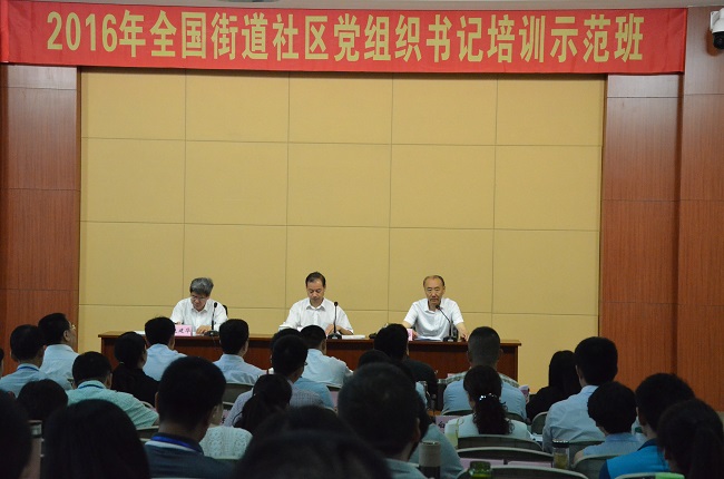 7月4日,2016年全国街道社区党组织书记培训示范班在东北大学辽宁社区干部学院开班。开班仪式由辽宁省委组织部副部长赵建华主持,东北大学党委书记孙家学代表学校致辞,中央组织部党员教育和干部测评中心副巡视员李凤学作开班动员。来自全国各地的76名街道社区党组织书记以及33名观摩人员参加培训。