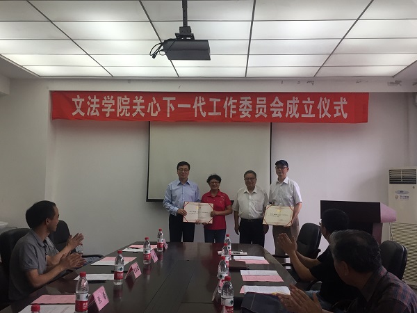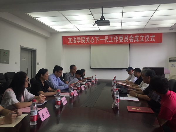 7月21日中午1:00,文法学院关心下一代工作委员会成立仪式在新机械楼206如期召开。会议由文法学院党委副书记兼副院长夏风云主持,列席会议的嘉宾有校关工委常务副主任王振范、校关工委副秘书长袁进恩、校离退休工作处党委书记邸馗、校关工委委员朱俊勤、文法学院原党委书记杨建春、文法学院党委书记张雷、文法学院院长孙萍、文法学院副院长隋永强、文法学院工会主席徐建、文法学院分团委书记蔡晓淇以及学生代表迟艳艳、李杰。