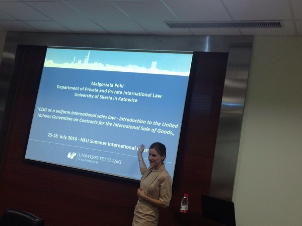 7月25日,文法学院2016年“暑期国际课程”《联合国国际货物销售合同公约》在浑南校区文管A202室开讲,本课程邀请到波兰西里西亚大学国际民商法学院Malgorzata Pohl为同学们授课,学院30余名师生参与到课程当中。