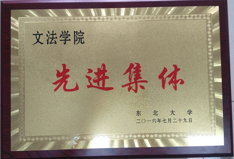 文法学院获东北大学2014-2016年度“先进集体”荣誉称号;孙萍、张平获得东北大学2014-2016年度“优秀教师”荣誉称号;李丹获得东北大学2014-2016年度“先进教育工作者”荣誉称号;杜宝贵、陈玉芬获得2014-2016年度东北大学“三育人”先进个人荣誉称号。