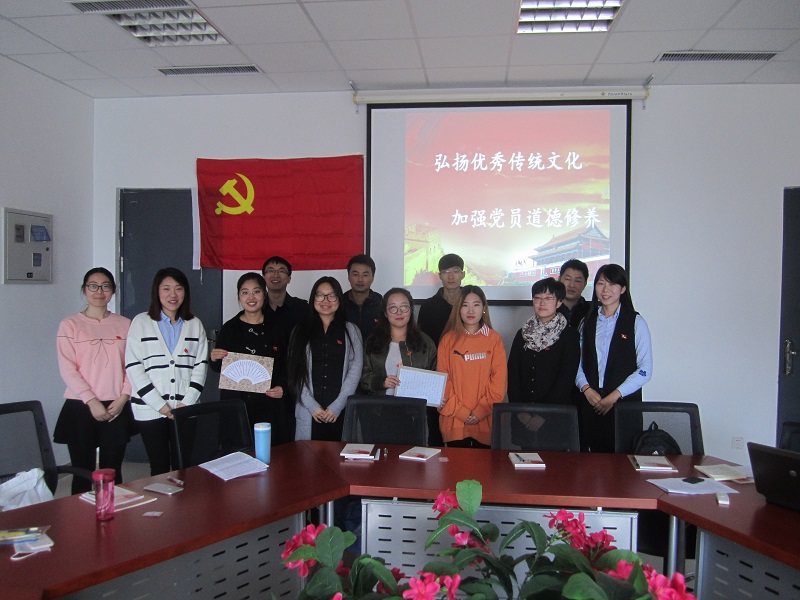 2016年10月13日上午10:00,文法学院文硕1605党支部在文管学馆A419开展了以“弘扬优秀传统文化 加强党员道德修养”为主题的党日活动。文法学院党委组织员高辉老师出席本次会议,并对本次活动内容进行指导。