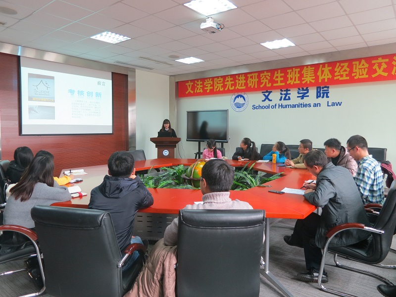 为进一步加强班集体间的交流,强化先进班集体建设的示范作用,引导文法学院先进班集体建设工作持续、有效的开展,发挥先进班集体“述优传优,表率示范”的作用,2016年11月3日下午13:00,文法学院先进研究生班集体经验交流会于文管学馆A202召开。本次会议由文法学院党委组织员兼研究生辅导员高辉老师主持,文法学院党委副书记兼副院长夏风云老师及研究生班长、团支书、党支书参与本次会议。