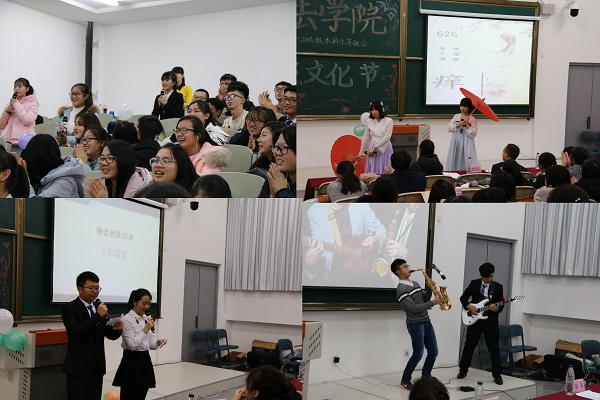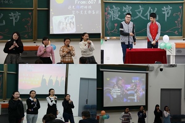 暖场视频放映结束后,寝室文化节文艺汇演暨颁奖典礼正式开始。首先,夏院长为本次寝室文化节致辞,一方面肯定了2016级本科生在寝室文化节中取得的佳绩,另一方面也表达了学院老师对同学们的关切之情。之后,女生寝室准备的开场舞,让晚会现场的氛围一下子活跃了起来,由女生寝室准备的歌曲串烧为同学们带来听觉的享受。最精彩的节目要数张洋和孔维昊带来的相声,两人以其独有的口音腔调和娴熟精湛的演技引得台下观众欢笑不断,频频喝彩,掀起了晚会的高潮。节目结束之后,颁奖典礼正式开始。首先,由甘霖老师宣布了寝室文化节的获奖名单。随后,三位老师依次为寝室装扮活动中的优秀寝室、配音大赛活动中的优秀寝室和在寝室文化节系列活动中最终胜出的优秀寝室颁奖,并合影留念。