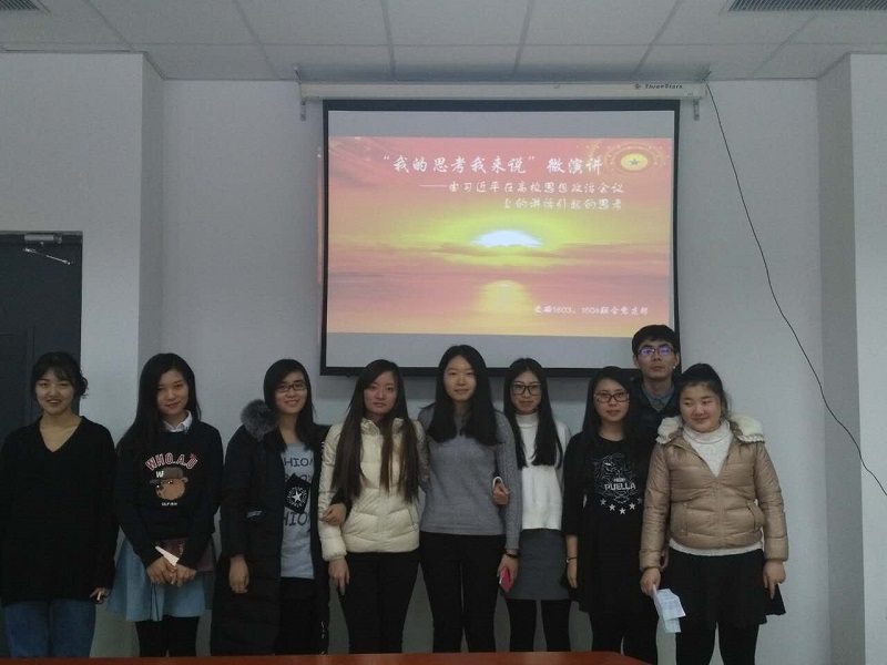 2016年12月16日下午13:15,东北大学文法学院文硕1603、1604联合党支部在文管学馆A212教室以创新式微演讲的形式开展了以“我的思考我来说――由习近平总书记在高校思想政治教育会议上讲话引起的思考”为主题的学习活动,文法学院党委组织员高辉老师、支部全体党员加本次活动,活动由党支部组织委员吴兆飞主持,