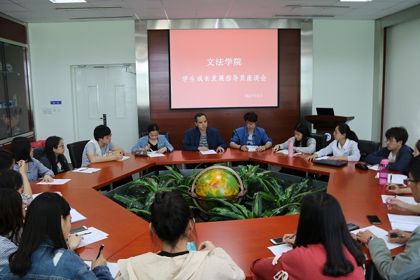 2017年5月11日13:00,文法学院于文管学馆A202召开成长发展指导员座谈会。文法学院党委副书记兼副院长夏风云,文法学院2014级、2016级本科生辅导员彭舟以及文法学院学生成长发展指导员参与了此次座谈会。会议由彭舟老师主持。