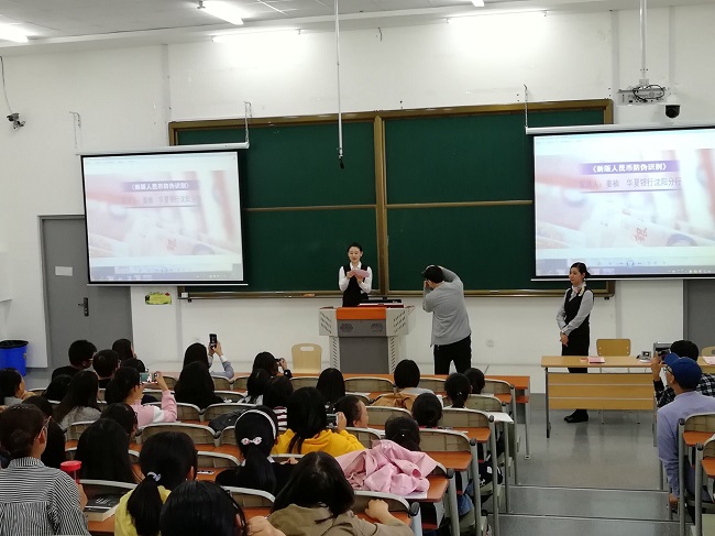 讲座的开始,姜楠首先进行了关于校园贷款、代提现等几种常见金融风险进行详细介绍,针对近年来普遍发生的校园借贷恶性事件提醒同学们提高警惕、规避风险。接着,工作人员讲解了一些常规的金融知识,介绍了零存整取理财、银行贷款等几种金融产品,让同学们通过正规渠道支配财产,维护自身的财产安全。随后,在宣讲员的带领下,同学们认真学习了新版百元钞票的鉴别,并开展了点钞比赛,同学们积极参与其中。