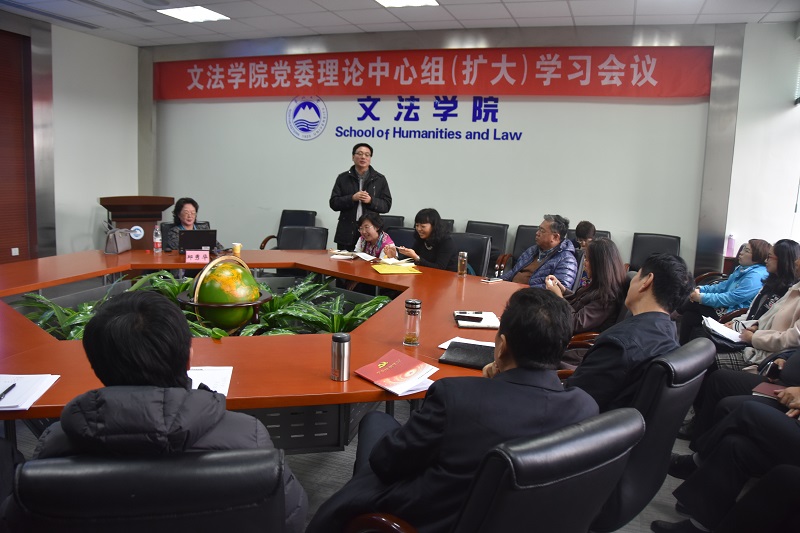 为进一步贯彻落实党的十九大精神,切实将思想和行动统一到党中央的决策部署上来,10月31日,文法学院党委在文管学馆A202室召开理论中心组(扩大)学习会议,专题学习党的十九大精神。学院领导班子、党委委员、系所(副)主任、支部书记参加了会议,会议由学院党委书记张雷同志主持。