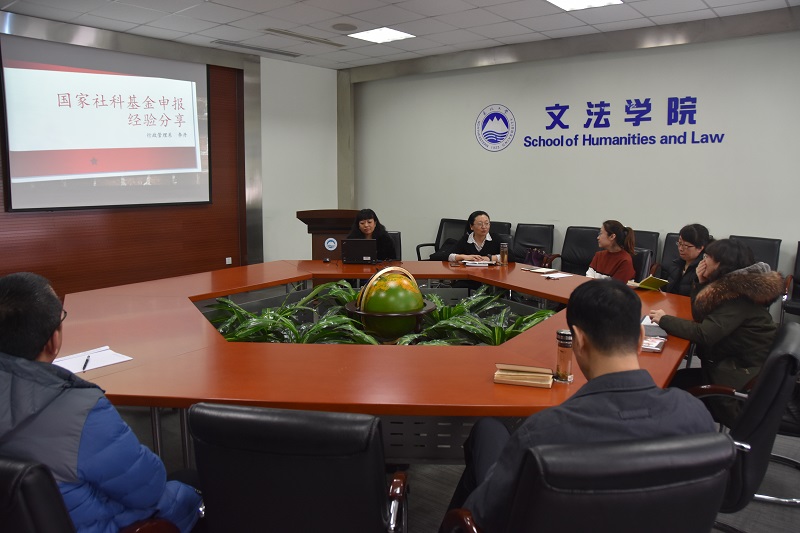 2018年1月10日下午,文法学院召开2018年国家社科基金项目和自然科学基金项目申报经验交流会,会议由宋戈副院长主持。