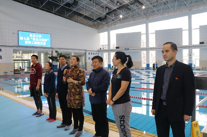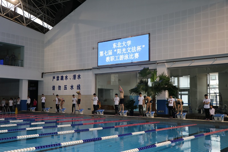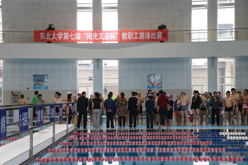 4月14日上午,东北大学第七届“阳光文法杯”教职工游泳比赛在学校游泳馆举行,100多名教职工参加了比赛,我院游泳参与人数和参与率均居全校首位。