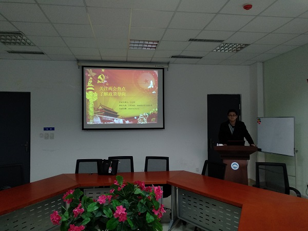 首先,党支部书记张静就两会最受关注的几点问题进行详细阐释,帮助党支部成员对两会内容形成更为宏观、全面的认识和理解。支部预备党员于泊明以“民众最为关注的两会热点问题”为切入点,进行了名为《关注两会热点、聚焦民众视点》的主题报告。