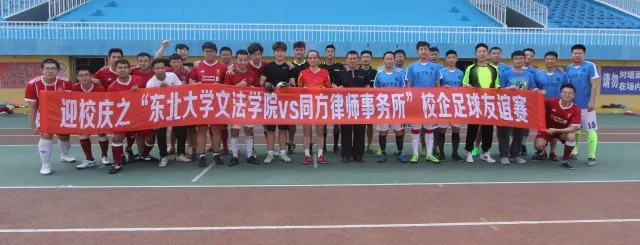 正值东北大学95周年校庆之际,文法学院特此举办本次校企足球友谊赛,不仅有利于锻炼文法学子的体魄,展现文法学子积极乐观,昂扬向上的精神风貌,更有利于加强校企双方的联谊与合作,增进校友间沟通,搭建同方律师事务所和文法学院相互交流的平台,为校企合作提供坚实的基础。