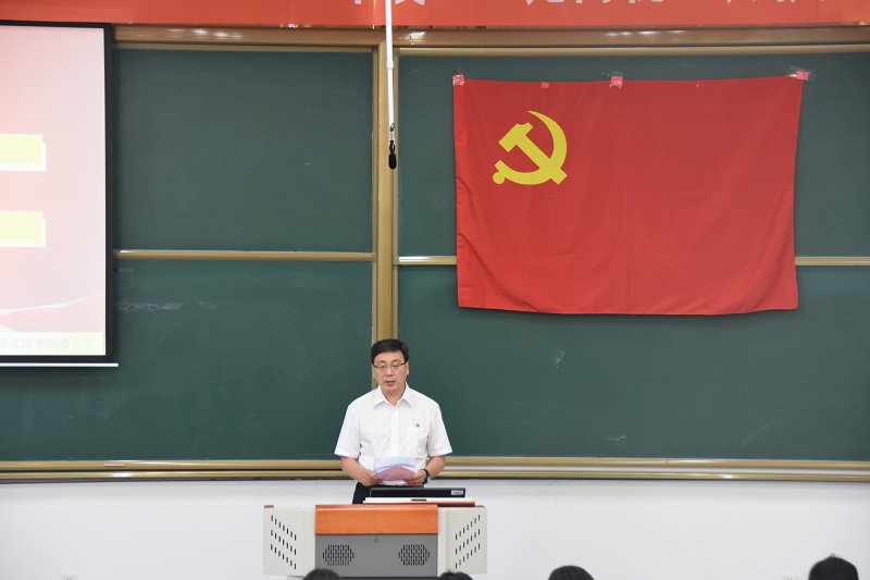 王辉部长代表学校党委组织部向文法学院师生党员带来节日问候,向受表彰的集体和个人表示祝贺。王部长充分肯定了文法学院的党建工作,并提出了三点希望:一是学院党委要进一步提高政治站位,提升学院党组织的组织力;二是学院党委要加强结合融入,让党建工作落地生根;三是要强化党员意识,增强责任担当。王部长表示,期待文法学院能够发挥学科优势,多为学校党委建言献策,为提升学校党建工作质量作出贡献,为学校“双一流”建设贡献智慧和力量。