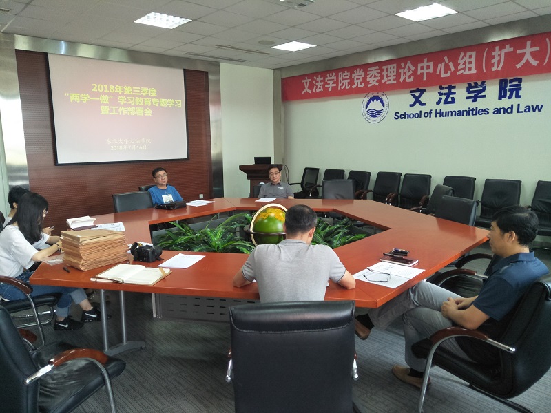 2018年7月16日上午8:30,文法学院党委在浑南校区文管A202召开党委会议,召开文法学院2018年第三季度“两学一做”学习教育专题学习和工作部署会,张雷同志主持。