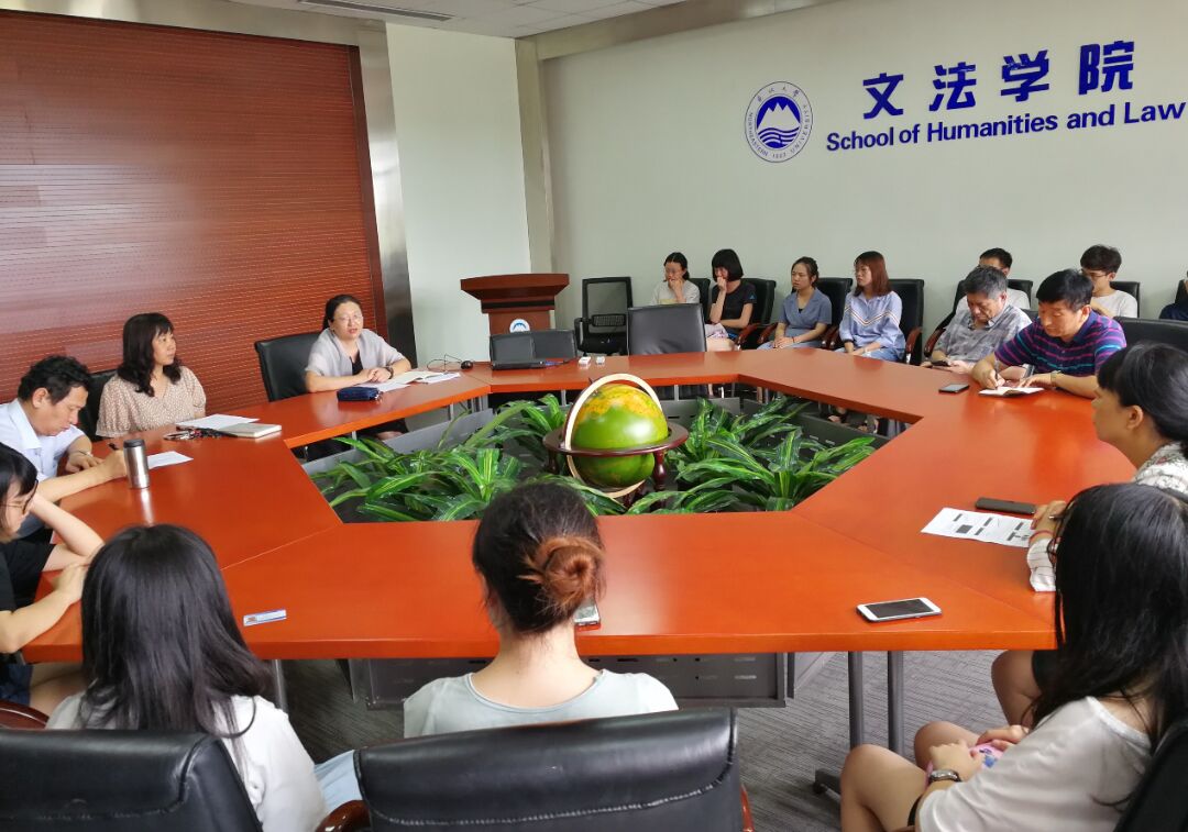 7月18日下午1时,文法学院于文管学馆A202会议室举行2018年硕士研究生专业报考宣讲会。教育经济与管理研究所所长宋官东教授、社会保障研究所所长李坚教授、土地管理研究所所长雷国平教授、行政管理系副主任李丹副教授、法律系赵凯副教授、教学科研办公室主任陈玉芬老师出席本次会议,会议由文法学院副院长宋戈教授主持。