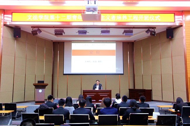 10月15日19:00,文法学院“青年马克思主义者培养工程”第十二期培训班主题讲座之“定位”在文管学馆B230成功举办。文法学院党委书记、跨文化战略研究院院长张雷主讲。文法学院团委书记兼本科生辅导员蔡晓淇,辅导员姜冬,学院团学组织机构全体学生出席本次活动。