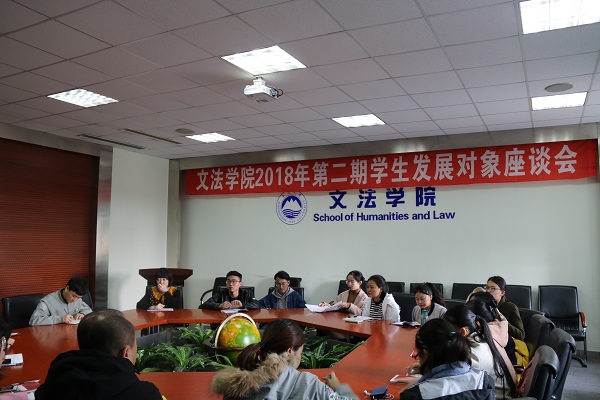 10月24日14:00,文法学院于文管学馆A座202室举办2018年第二期学生发展对象座谈会。18名学生发展对象参与本次座谈,座谈会由彭舟主持。
