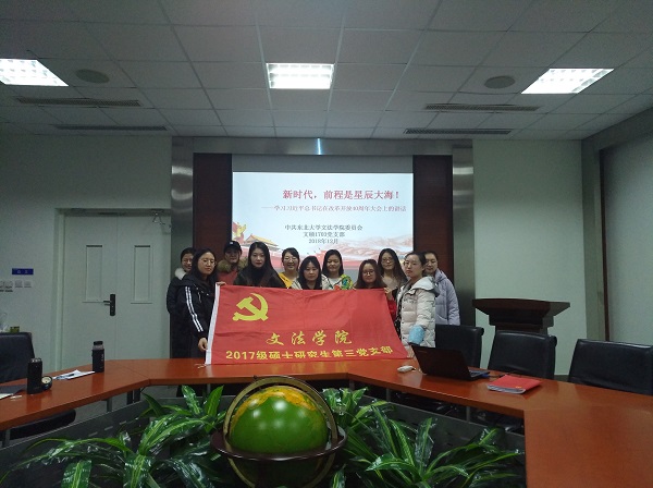 12月20日晚6:30,文硕1703党支部在文法学院会议室开展主题为“新时代,前程是星辰大海”的党日活动,旨在学习习近平总书记在改革开放40周年大会的重要讲话精神。支部全体党员参与其中。