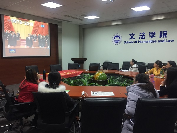 观看大会重播后,各位党员从自己专业出发,回顾40年改革开放国家在教育、土地管理、社会保障的发展,展望未来。党员们表示作为新时代青年,我们是成长于改革开放胜利成果中的一代人,我们在享受美好之时,既要心存感恩,又要有忧患意识。发展日新月异的形势下,从小我的层面,我们应当提升自我,实现人生价值。在大我的层面,我们青年人有着实现中华民族伟大复兴中国梦的历史使命。之前的40年,我是受益者,之后的每一年,我都要做改革的见证者、参与者、奉献者!