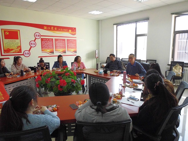 本次茶话会历时1个小时,会后,支部委员代表党支部向两位老师敬献鲜花,并合影留念。