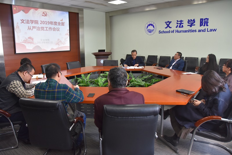 4月1日,文法学院2019年全面从严治党工作会议在文管学馆A202举行,学院党委委员、系所主任、师生党支部书记参加会议,会议由党委副书记夏风云主持。