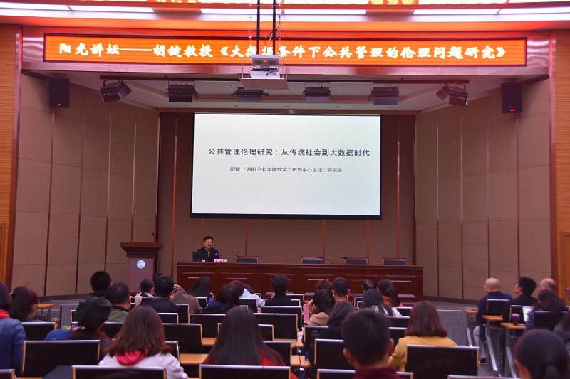2019年4月24日(周三)14:00,应我院邀请,上海社会科学院软实力研究中心主任、教授,《社会科学》杂志社社长、主编胡键在文管学院B230报告厅为我院师生带来题为“公共管理伦理研究:从传统社会到大数据时代”的学术讲座。讲座由颜德如教授主持。