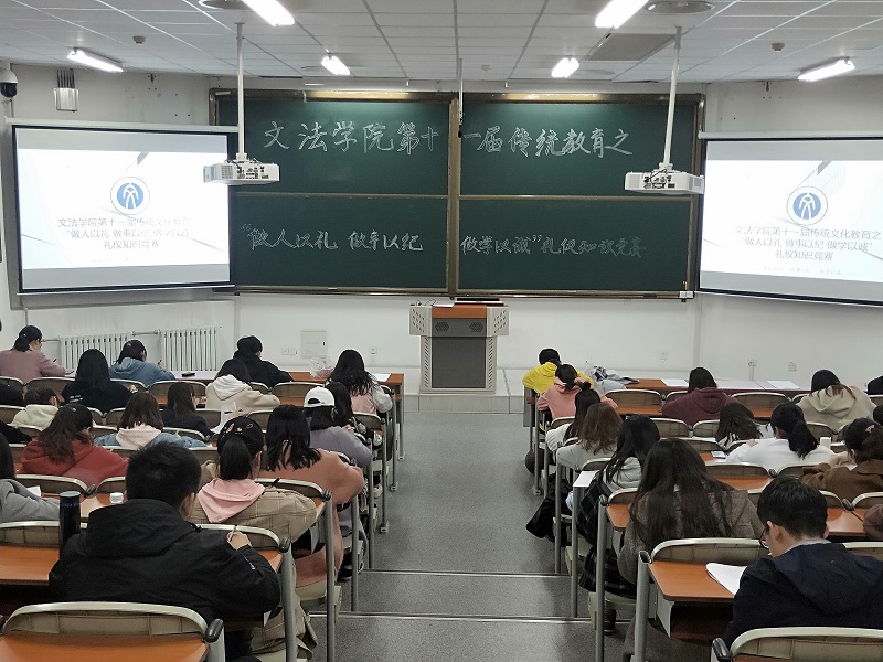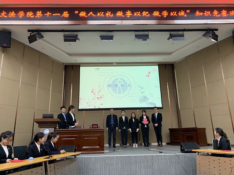 据悉,文法学院“做人以礼做事以纪做学以诚”系列活动由文法学院团委主办,旨在弘扬中华传统美德,全面提高学生的思想道德素质和文明礼仪素养,营造阳光、和谐、健康的校园氛围。第十一届活动于今年3月初全面启动,学院团委给各支部配发相关学习资料,以团支部为单位自行组织为期一个半月的学习,于4月19日在全院范围内开展初赛选拔,取初赛成绩前四名的团支部(文硕1803、事业1701、行政1701、公管类1802)参加决赛。