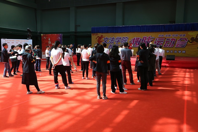 5月15日下午2:00,文法学院第二届教职工趣味运动会于东北大学浑南校区风雨操场东侧演播大厅举行。比赛由学院工会主席、新闻学系主任徐建主持,文法学院全体教职工参与比赛。