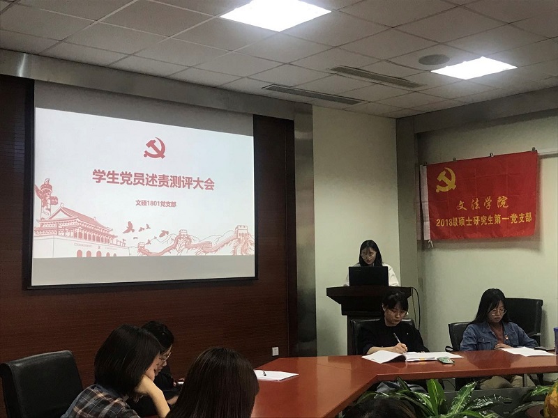 5月21日18:30,文硕1801党支部在文管学馆A202开展党员述职测评大会。本次活动由2018级硕士辅导员姜冬、党支部全体党员与班级全体成员共同参与,党支部书记尤田甜主持。