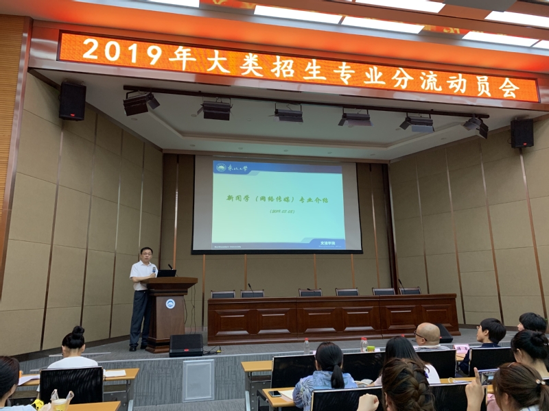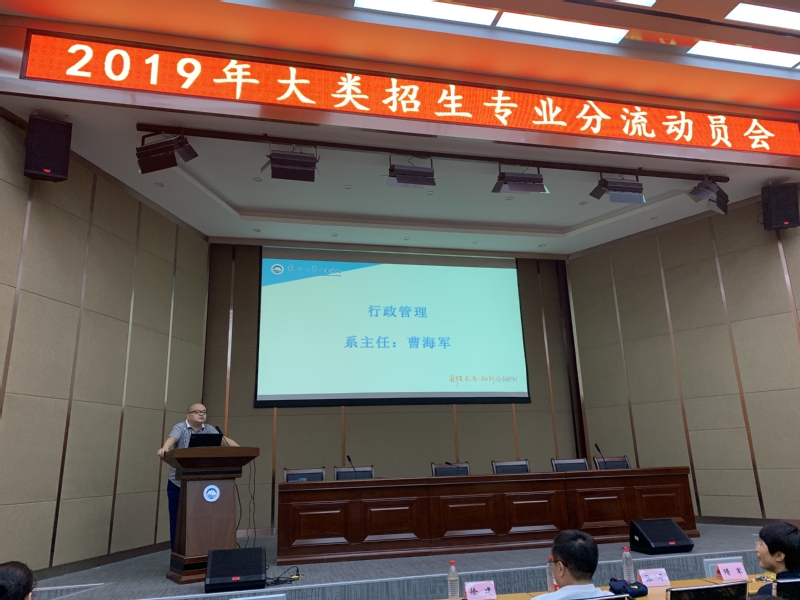 为了有序开展大类招生专业分流工作,2019年7月8日下午13:00,文法学院召开2018级公共管理大类招生专业分流动员大会。各专业负责人、文法学院教学科研办公室教师、2018级辅导员及2018级全体本科生出席本次会议。