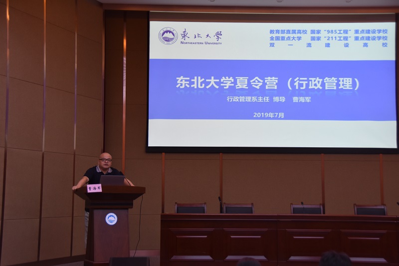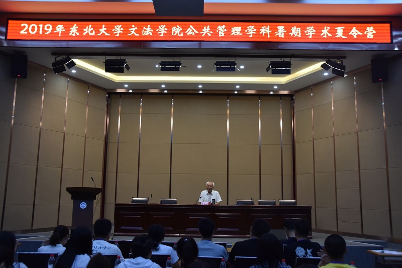 开营仪式后,宋戈首先向全体营员讲解了本次夏令营活动及考核规定,并着重强调了夏令营的活动纪律和规则。之后行政管理系娄成武教授做了《公共管理学科发展及前沿问题介绍》学术报告,他以东北大学历史发展脉络为主线,详细讲解了公共管理学科的发展历程及学术前沿问题。娄成武的学术报告开拓了营员们的学术视野,在营员中引起强烈反响。