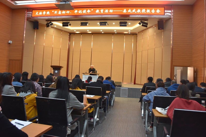 10月16日14:00,文法学院“不忘初心、牢记使命”主题教育——娄成武教授报告会在文管学馆B230室举办。文法学院全体教师、2019级全体硕士研究生新生参加。