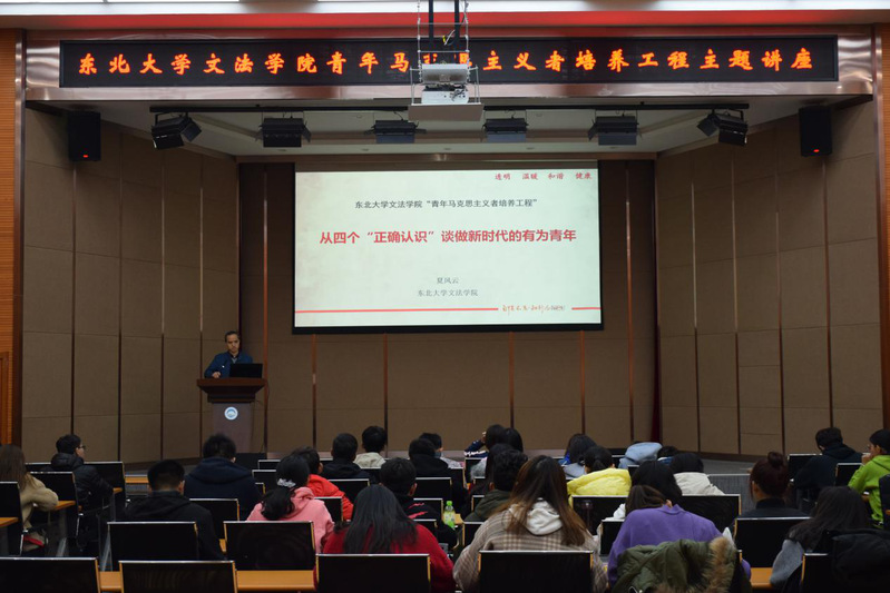 10月15日下午13:00,文法学院第十三期青马培训——从四个“正确认识”谈做新时代的有为青年主题讲座于文管学馆B230举行。文法学院党委副书记兼副院长夏风云、文法学院团委书记蔡晓淇出席了本次讲座。本次青马工程讲座由夏风云主讲。