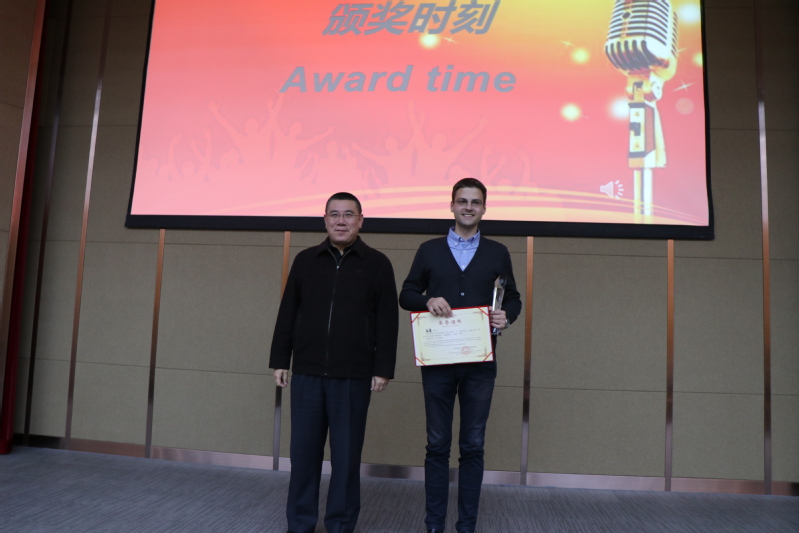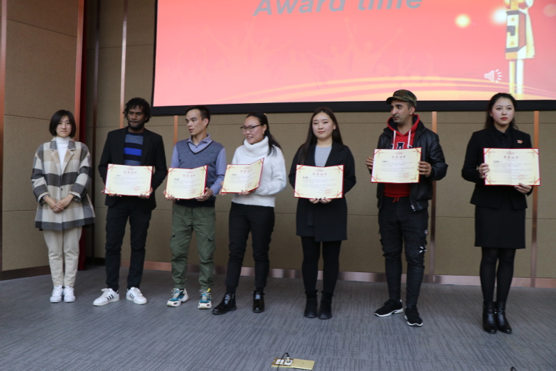 比赛中,选手们围绕“学在东大,爱在东大”的活动主题展开5分钟的演讲,或讲述相遇东大的奇妙经历,介绍“最喜爱的中国美食”、“最喜爱的中国歌曲”,或描述留学中国的深厚感情:“中国最吸引我的地方”、“为什么来中国留学”;有的深入浅出,阐释“学习中文中遇到的困难”,分享“我与中国移动支付”的不解之缘,有的真情流露,抒发对良师益友的感恩与对两国友谊长存的期望,赢得在场观众的掌声与喝彩。三位评委老师和学生评审团从主题契合度、舞台感染力、汉语流利度、逻辑性及创新性五部分对演讲选手进行评分。最后,孙勇获得一等奖,董佳佳、梁氏芝获得二等奖,梅如玉、苏里曼、邓陈黄英获得三等奖,阿梅尔、黄文遵、巴兹玛、敖日韩、马真姬、杰姆获得优秀奖,在场领导老师为获奖选手颁奖并表示祝贺。