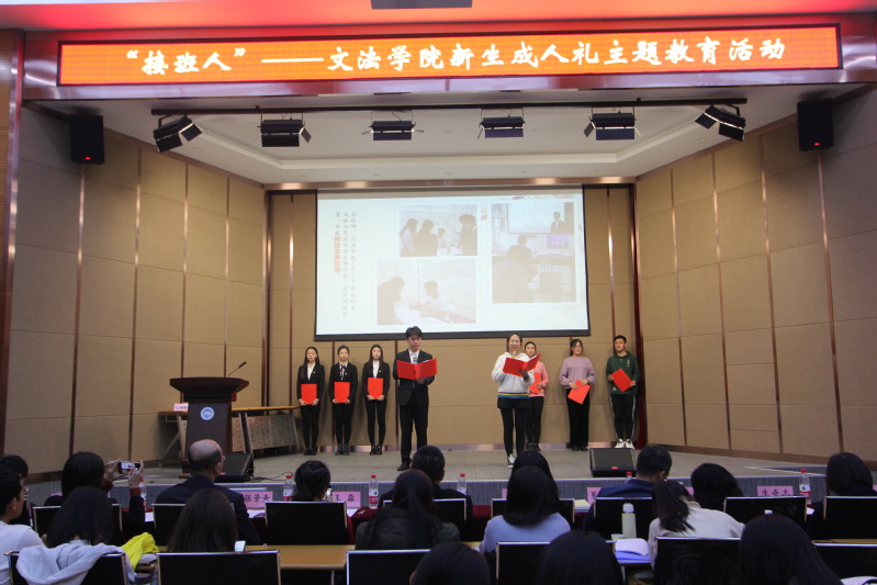 活动以全体新生宣誓礼结束,不同角度的思考,不同层面的成长,诠释出文法学子作为新时代“接班人”的使命担当。