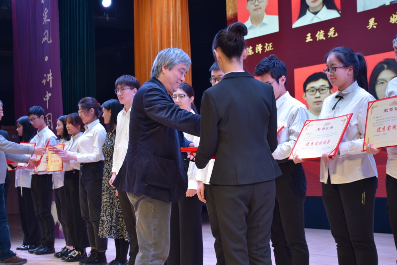 在表彰仪式环节中,党委副书记兼副院长夏风云宣读2019年文法学院暑期社会实践表奖决定,彭舟、姜冬两位老师为社会实践优秀个人颁奖;郭振中、姚天冲两位老师为优秀社会实践报告撰写人颁奖;夏风云、孙宏伟两位老师为优秀社会实践团队颁奖;张雷、隋永强两位老师为优秀指导教师颁奖。随后,获奖学生代表李一萌同学发言。她对学院给予的宝贵实践机会和有力物资精神保障表示感谢,对指导教师和团队成员的付出表示感谢,她与在场同学们分享了参加实践的感悟和成长锻炼,鼓励更多的同学能够积极参与到实践中,在实践中促升个人综合能力。