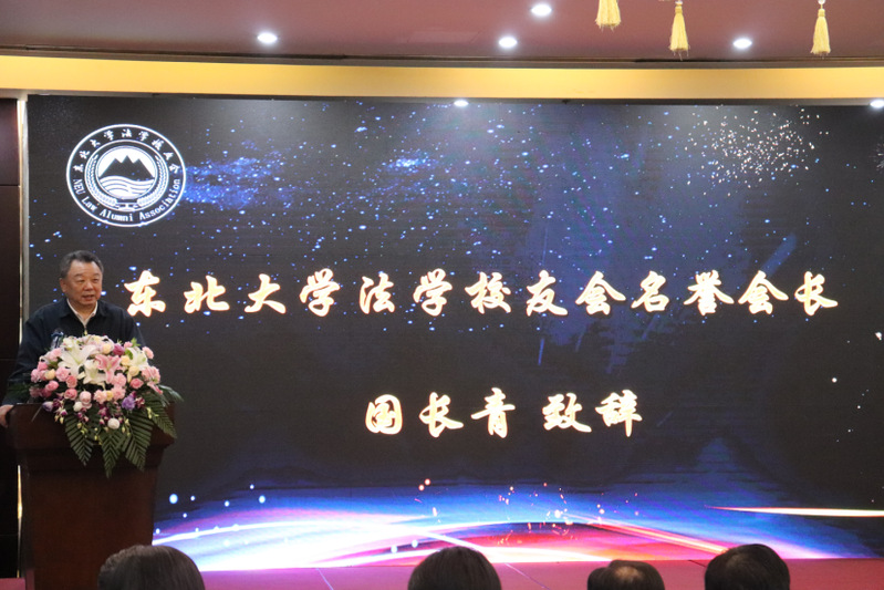 国长青会长进行致辞,他从解读依法治国战略出发,回望了我国法治建设进程,呼吁广大法学校友树立法治思维,在工作中运用法治方式。