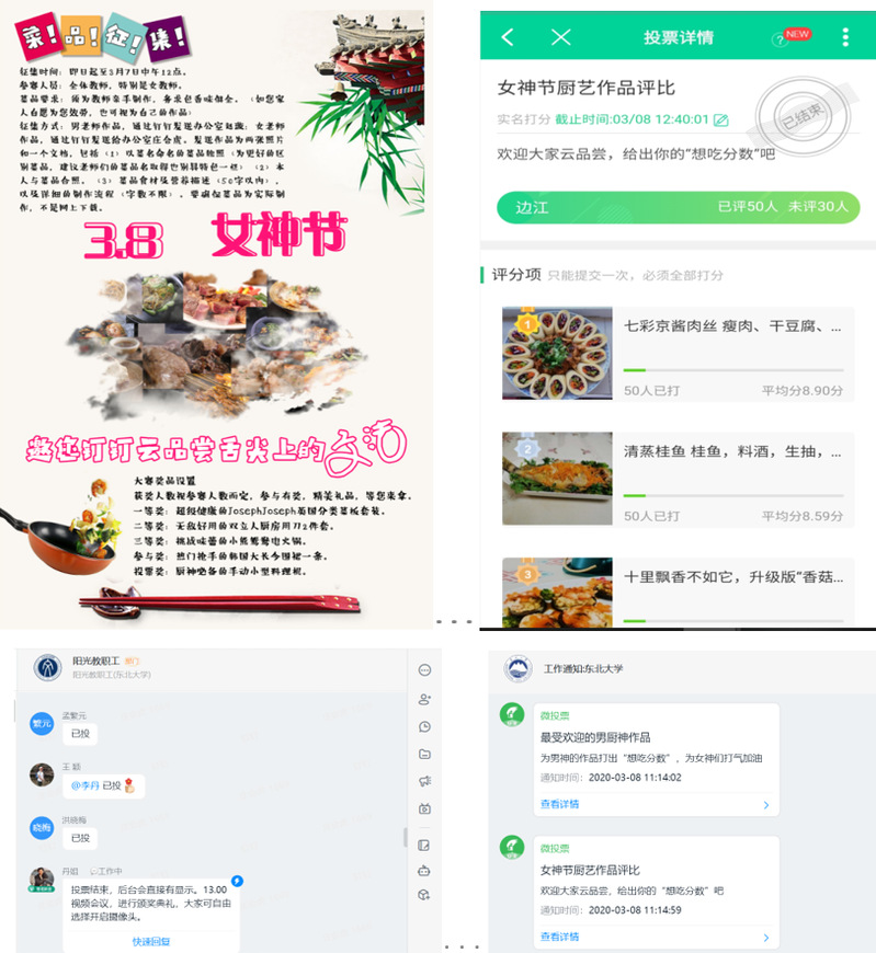 3月8日中午,学院举行了线上投票和颁奖仪式,李丹副院长主持。张雷院长开场,表示开学两周以来,学院线上教学平稳开展、效果良好,其他各项工作有条不紊,要感谢全体教师的共同努力,同时对全体女教师表示节日祝福,并公布第一个奖项——“最受女士欢迎的男教师作品”大奖——陈德权老师“辣炒海花蛤”。