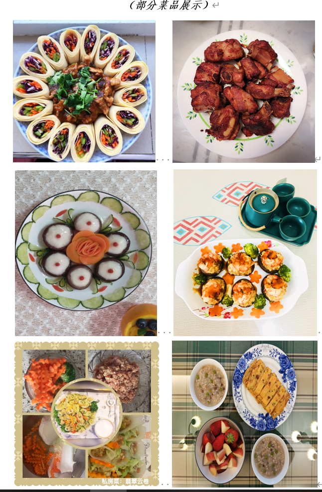 活动通过征集教师厨艺作品图片方式开展,学院教师积极参与、大显身手,无论是翡翠云卷、芝士大虾,还是火遍网络的减脂瘦身果蔬餐,或是直击灵魂的牛肉烧土豆盖饭,都显示着我院教师对生活的热爱。经过十天的征集,共有22位女教师和11位男教师参赛,征集到33份精美菜品,参赛率达43%。