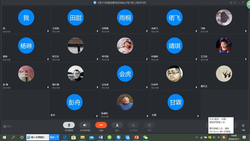 首先,党委书记隋永强对疫情防控以来学院的各项工作进行总结,并结合《关于充分发挥全校各级党组织和广大党员、干部在疫情防控期间作用的通知》和《东北大学党委组织部疫情防控期间基层党建工作通知》等文件,对基层党组织建设、支部立项、特色支部创建、发展对象培训和党员发展、党费缴纳、“课程思政”建设等提出要求,对下一步学院党建工作进行动员。他指出,作为人文社科专业的师生,要发挥专业技能,为疫情防控贡献自己的力量。党支部书记,要依托钉钉、微信等线上平台,及时掌握师生动态,加强人文关怀,共同做好疫情防控期间工作。